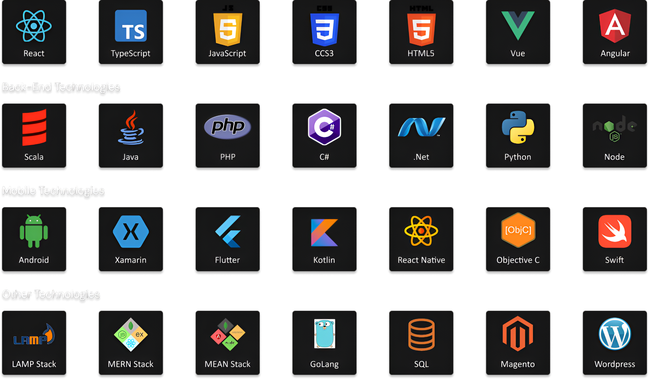 We have a full-fledged team of developers, experienced in diverse technology Skillset to deliver high-quality products. Be it a full stack developer MEAN, MERN, LAMP or an Automation Tester we can provide a vetted one in quick 48 hours. Some of the major technologies we deal in are.